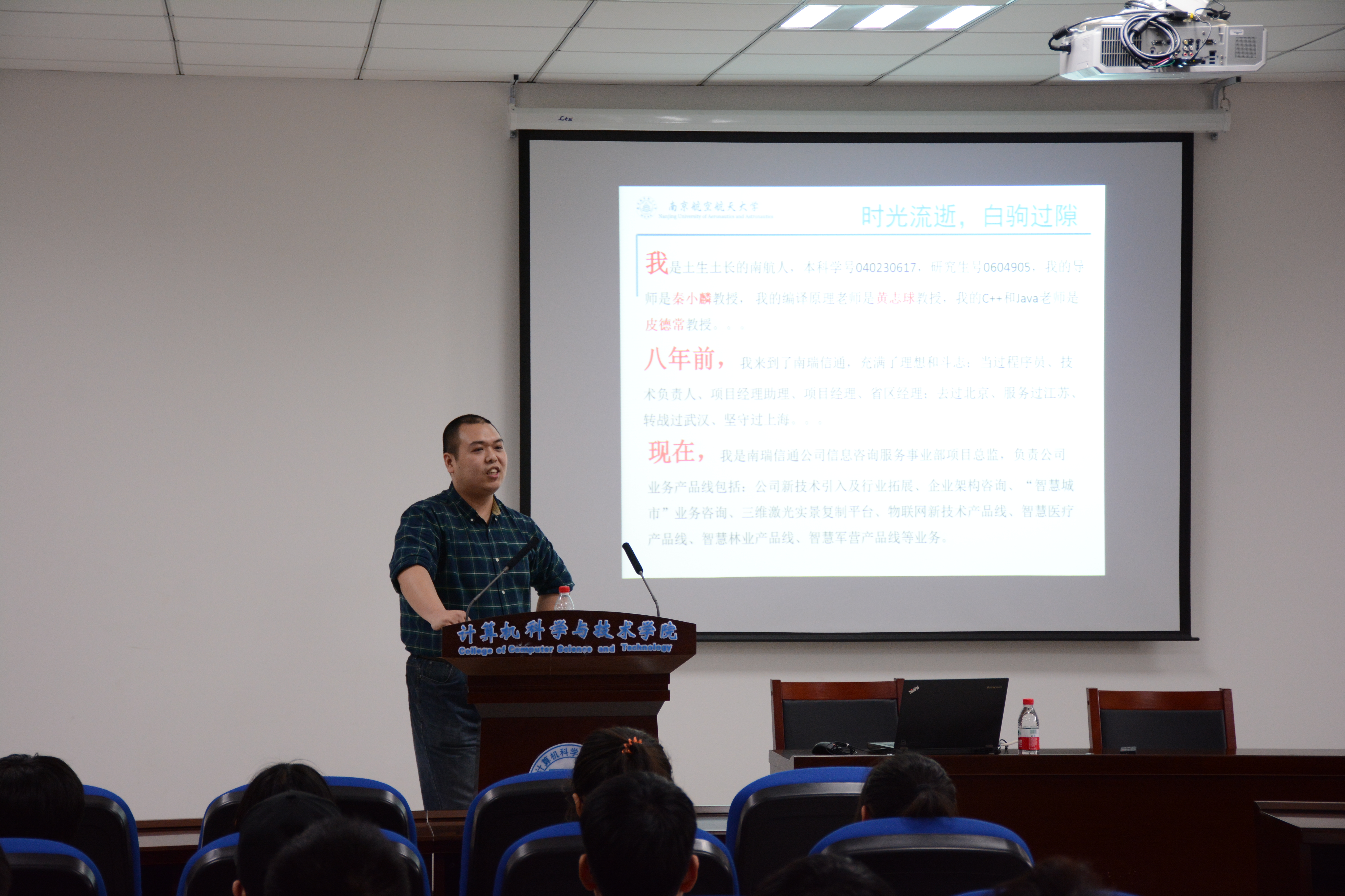 5月18日下午4点,在英国上市公司365113会议厅,南瑞信通项目总监张子谦、项目经理刘博,为我院学生带来了一场精彩的“凤回巢”校友职场说经验分享讲座。本次讲座吸引了各年级近百名同学前来聆听。