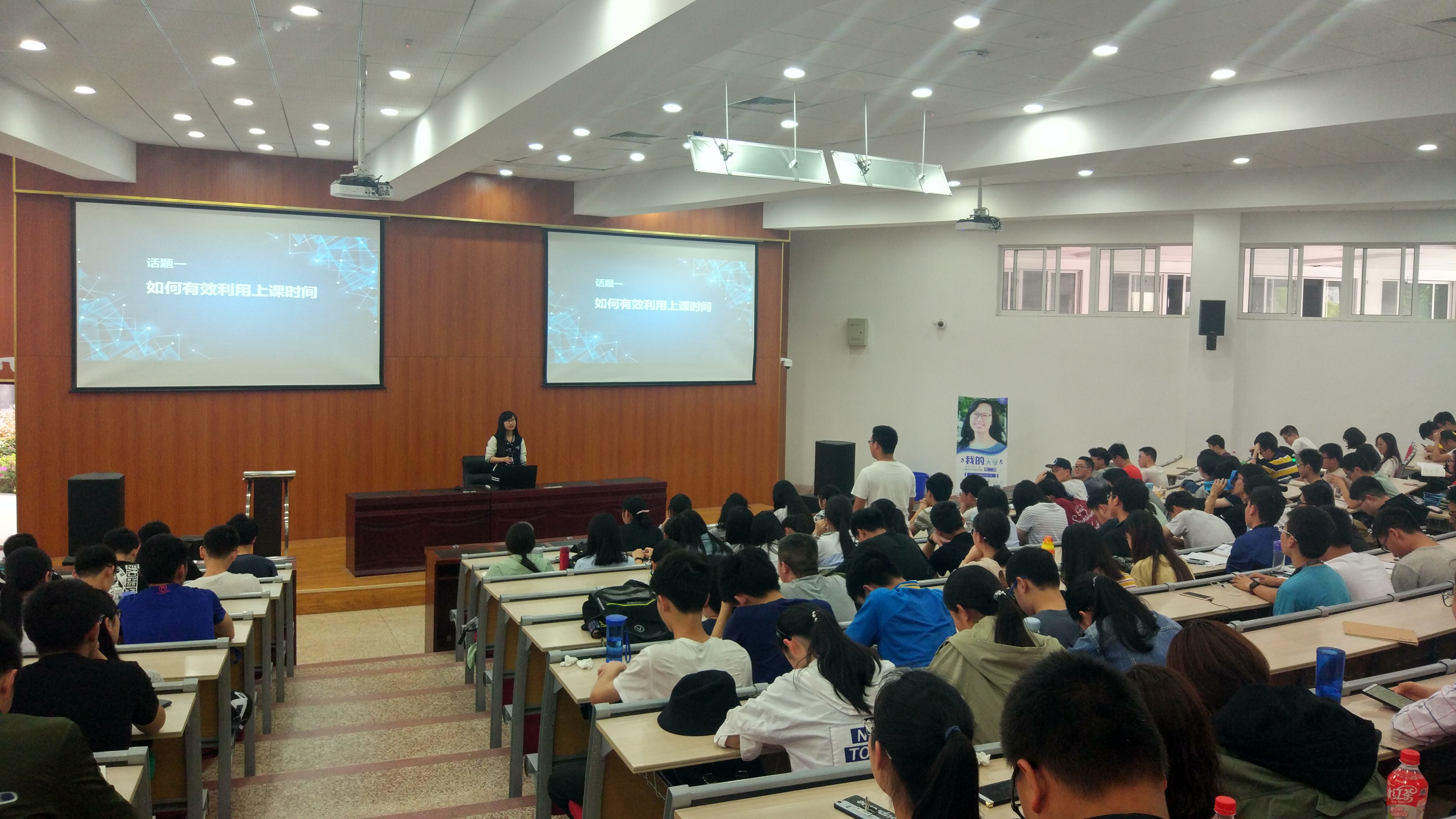 接下来2016级沈南玥同学就“如何有效利用上课时间”、“如何根据自己的兴趣正确评估自己,确定今后发展的方向”、“对于计算机专业,哪些专业基础课程比较重要”、”为何一定要学好英语”四个问题进行经验分享,为同学们解决了学习中的诸多疑惑。