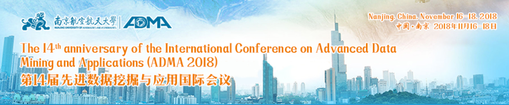 第14届先进数据挖掘与应用(ADMA2018)国际会议是数据挖掘领域、知识发现等领域在世界范围具有重要影响力的旗舰会议。澳洲权威学术评级ERA和CORE将ADMA会议评为B类。
