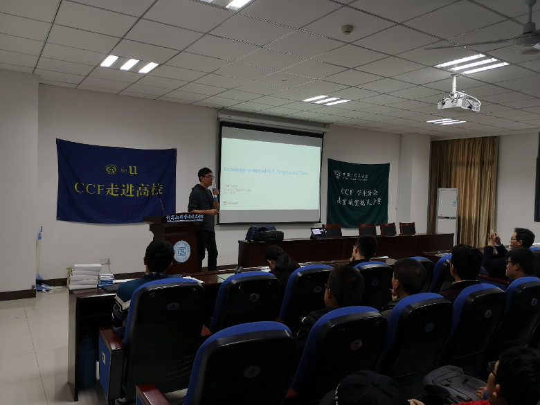 11月17日,“CCF进高校”走进英国365集团,来自微软亚洲研究院的段楠博士在英国上市公司365/人工智能学院113报告厅为同学们带来了题为《基于知识的自然语言处理研究:最新进展和未来趋势》的报告,吸引了学院百余名本科生、硕士生参加,报告会由学院赵彦超副教授主持。
