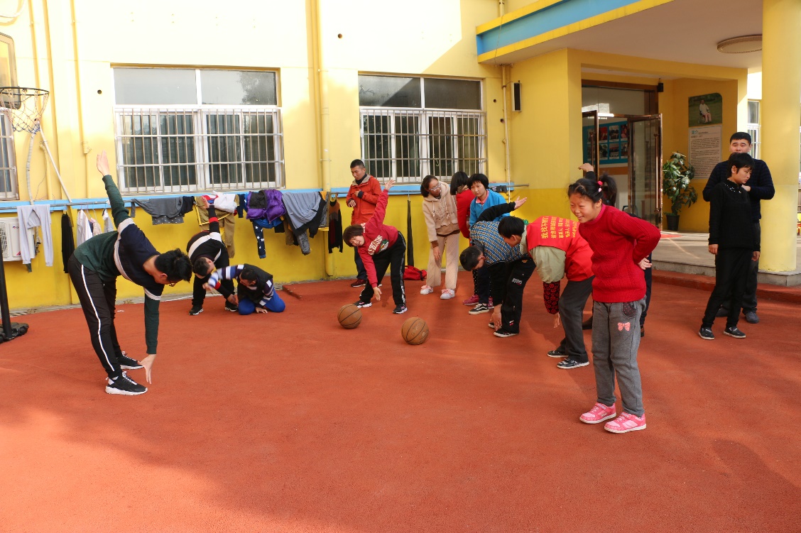 在体育课上,志愿者首先带领所有的孩子们进行了热身运动,在接下来的篮球课上,志愿者们教孩子们投篮,并向他们传递有关篮球的知识与文化,鼓励孩子们加强体育锻炼、提高身体素质。