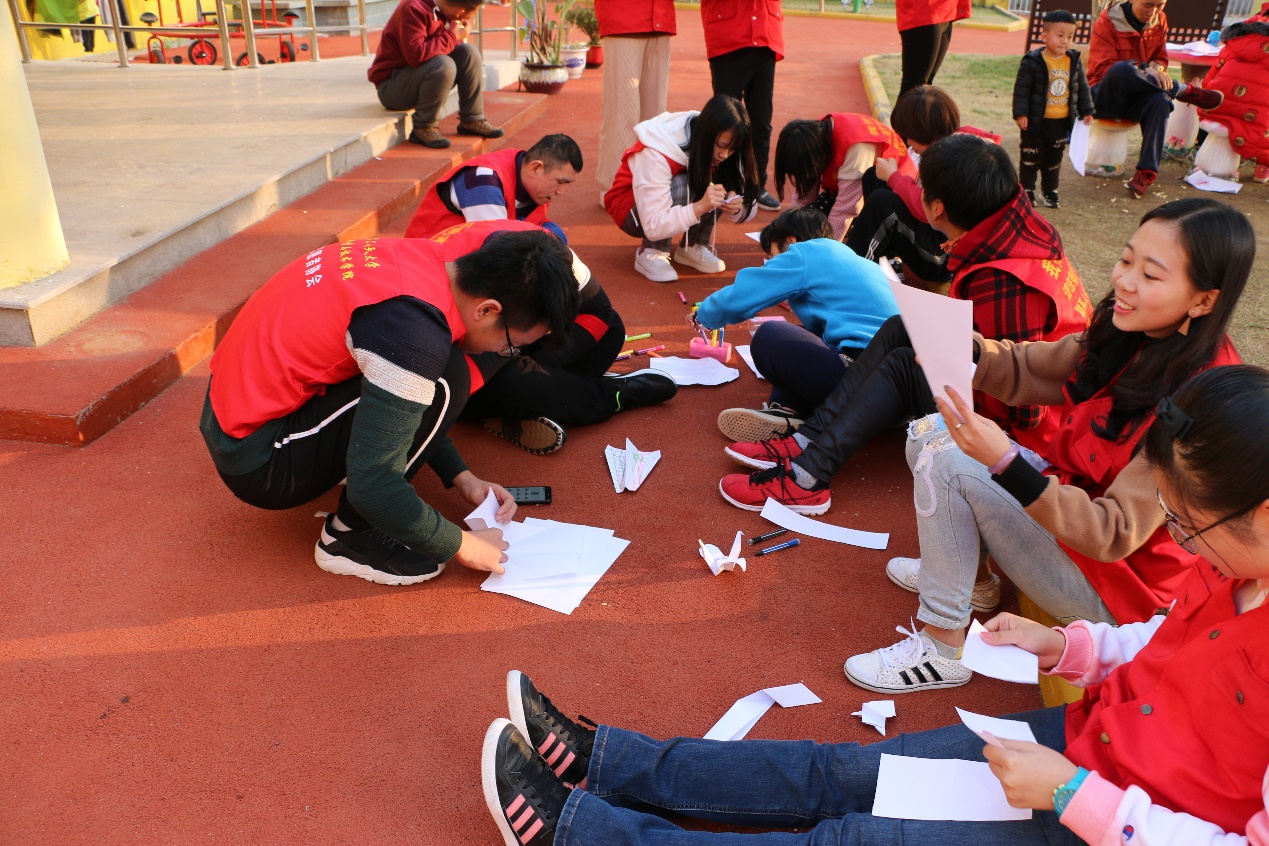 最后的手工课是做纸飞机,从纸飞机的折叠到装饰,志愿者手把手地教孩子们。看到自己折的纸飞机飞上天空,孩子们兴奋地又蹦又跳。