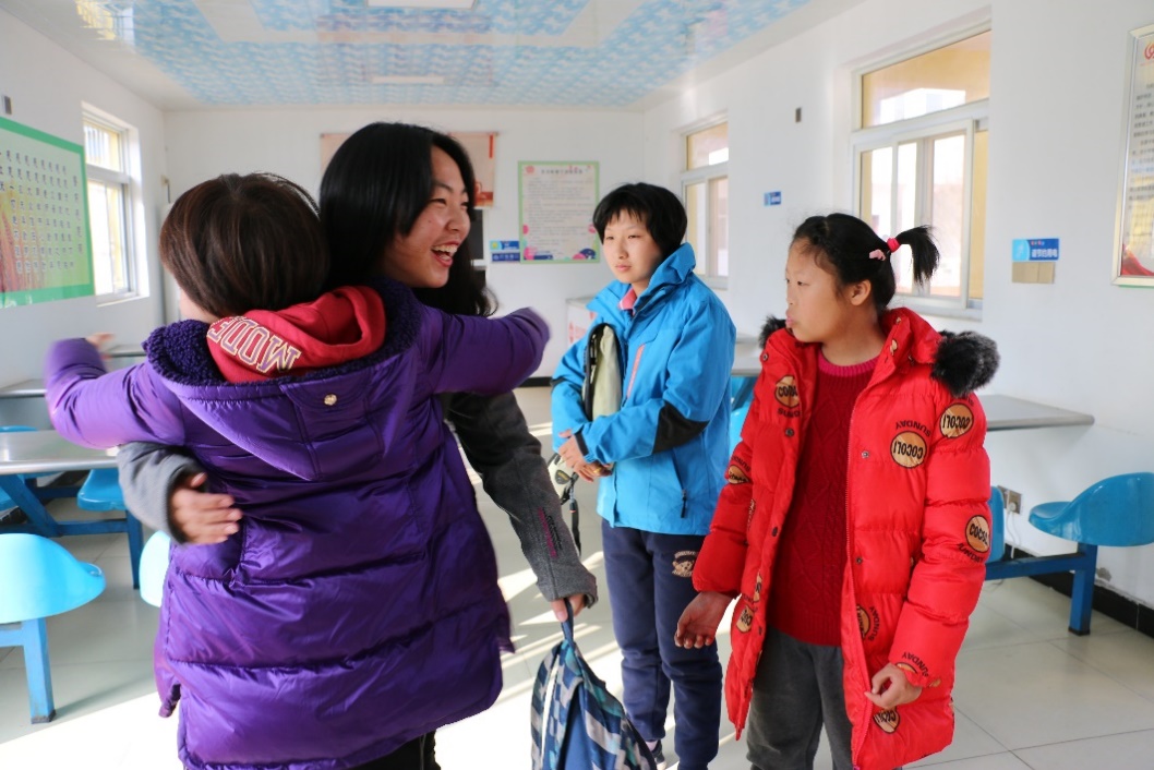 随后的音乐课上,志愿者们教孩子们合唱《我的中国心》。虽然有一些孩子因为先天疾病不能很顺利地学会,但是他们一字一句地努力跟唱,打动了在场的每一个人,稚嫩而优美的歌声飘扬在学校上空。