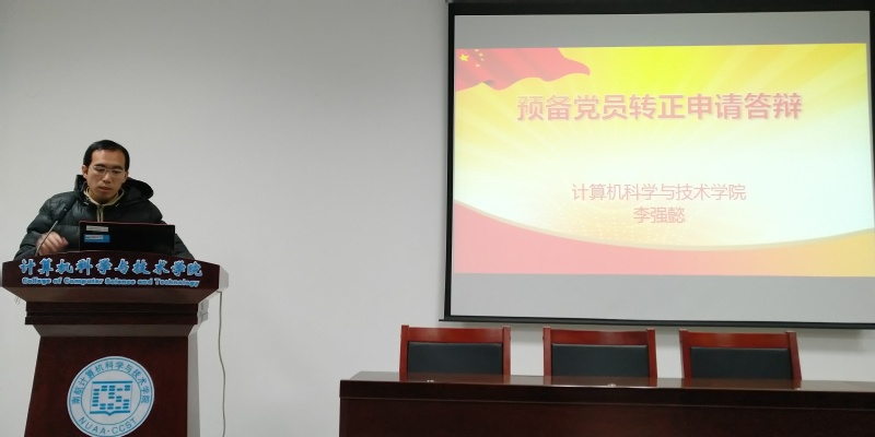 答辩过程分个人陈述、现场问答、现场评议三个环节。个人陈述环节,11名答辩对象依次通过PPT展示汇报了本人一年来思想、学习、生活、群众关系、党性修养及存在的不足等方面的情况。同学们结合自身学习和实践活动感受,纷纷表示要按照“两学一做”的要求不断提高自己的党性修养和政治素质,努力做到“内化于心,外化于行”;要认真学习党的十九大精神和习近平新时代中国特色社会主义思想,不断增强责任意识和使命意识,努力掌握本领,为祖国建设发展贡献力量。