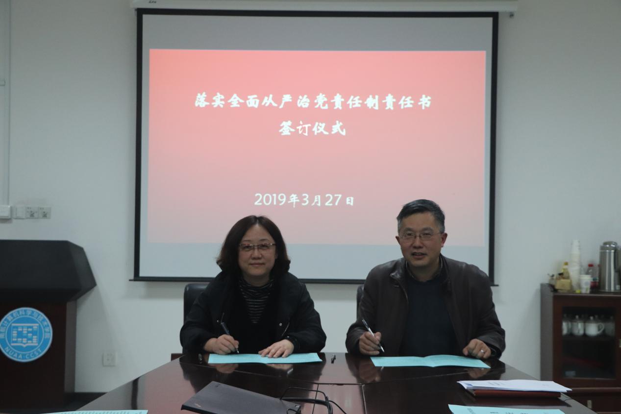 会议举行了落实全面从严治党责任制责任书签订仪式。刘健荣强调了新时期落实全面从严治党工作的重要意义,并对责任书的内容作了说明。随后,从院领导到院长助理、科级干部、党支部书记,分层签订了《全面从严治党责任制责任书》,旨在以明确责任为基础,以健全机制为重点,以运用监督执纪“四种形态”为抓手,以严肃问责为保障,推动全面从严治党主体责任落地见效,为学院改革发展营造风清气正的良好氛围、提供有力的政治纪律保证。