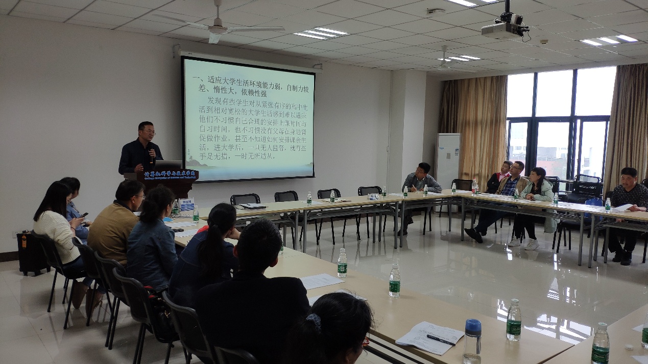 交流会上,曹智博说明了年级学困生情况,分析了学业困难的成因,并介绍了学院在学业帮扶方面采取的系列举措及面临的困难。他还结合近年来因学业困难所产生的退学学生实例及成功转化的案例对学困生的教育培养进行了剖析与经验分享,希望家长高度重视,与学生共渡难关。随后,王香就学生的学年学分考核及延长学年、退学的相关学籍管理办法做了详细的解读。杨易分析了学业困难学生的心理状况,为家长如何与学生实现有效沟通、帮助学生走出困境、进一步提升自我成熟度与管理能力提出了切实的方法与建议。最后,孙涵就学困生帮扶中家校协同转化工作的开展对家长们提出几点建议与要求。