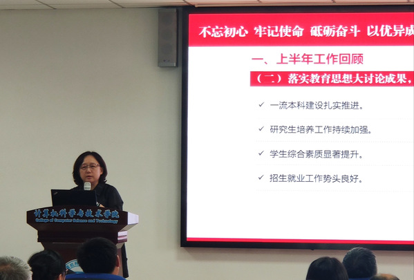 随后,副院长赵蕴龙介绍了教育部对人才培养的新要求和新举措,总结了上半年本科各项教学工作,并对下半年重点工作进行了介绍,特别就工程教育专业认证申请工作进行了部署。副院长燕雪峰主要介绍了2019年的研究生招生和座位分配情况,以及研究生培养方案修订工作安排,并介绍了学校以及学院科研相关工作情况,特别是针对国防科研及人工智能的机遇进行了介绍,希望各位老师能够抓住机遇,收获累累硕果。