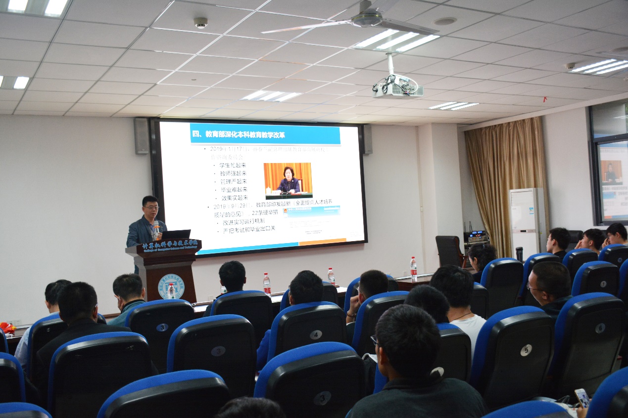 10月16日下午,计算机科学与技术/人工智能学院2018级卓越班开班典礼在学院113报告厅举行,出席本次开班典礼的领导嘉宾有:学院副院长赵蕴龙、党委副书记管祎、专业主任朱友文,许建秋、教学主任林卉,以及南京慕测信息科技有限公司的行业导师房春荣老师。典礼由18级辅导员胡朋主持,2018级全体卓越班同学参加了此次开班典礼。