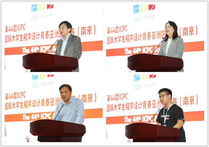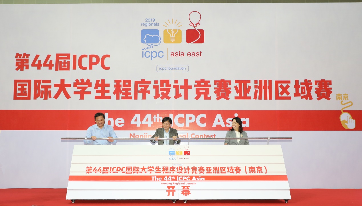 施大宁副校长代表学校致开幕辞,他简要介绍了南航办学历史并指出,在网络强国战略思想的引领下,信息技术和信息人才正成为社会发展的重要力量。ICPC国际大学生程序设计竞赛对深化人才培养模式改革、提升一流人才培养质量具有重要作用,希望各兄弟高校以此次大赛的举办为契机,加强校际交流、增进兄弟友谊,进一步探讨教育教学改革的经验和做法,推动信息学科的建设和发展,共同为培养创新创业人才贡献力量。接着,张巍处长代表江苏省经信委会发言,她表示,江苏的软件产业发展在全国遥遥领先,人才和创新是产业发展的灵魂,ICPC国际大学生程序设计竞赛为发现、培养、集聚更多优秀软件产业人才提供了一个良好的平台。江苏信息产业将不断加强产学互动,有力推动数字经济与实体经济融合发展。龚一钦主任代表江苏省青少年科技中心对本次大赛的顺利举行表示衷心的祝贺,感谢南航多年来对中心各项赛事举办的支持。随后,浙江大学陈靖邦同学作为参赛学生代表发言,南航张宗杰同学作为裁判员代表进行宣誓。最后,施大宁副校长、张巍处长、龚一钦主任共同为大赛开幕启动,大赛正式拉开序幕。随即开展了3个小时的热身赛,让选手们在熟悉比赛环境与流程。