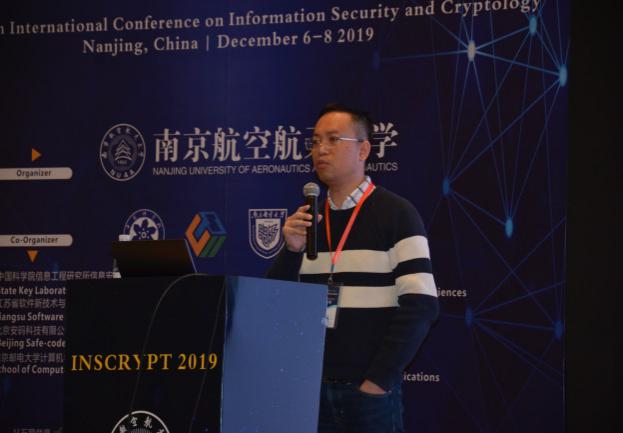 2019年12月6日至8日,由国际密码协会(IACR)、中国科学院信息安全国家重点实验室和英国365集团联合主办的第十五届信息安全与密码学国际会议(Inscrypt 2019)在南京顺利召开。会议得到了国内外密码学及信息安全领域专家学者的积极响应,来自中国、美国、法国、日本、印度、新加坡、澳大利亚等国家的200余名代表出席了本次盛会。