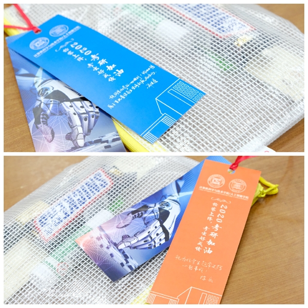 最后,面向全体考研的同学开展考研动员会,从考前准备、考中注意事项、考后安排能方面对考研学生做了提醒,特别指出学院党委书记刘健荣、院长陈兵分别以书面形式为各位考研学子送上寄语,并制成精美书签会同“考研大礼包”一起发放给学生作为勉励。(作者:黄基)