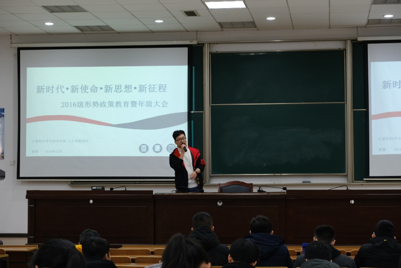 12月12日下午,计算机学院2016级年级会在将军路校区D1213教室举行。本次年级会的主题为“新时代、新使命、新思想、新征程”,由2016级本科生辅导员黄基主讲,2016级全体本科生参与。