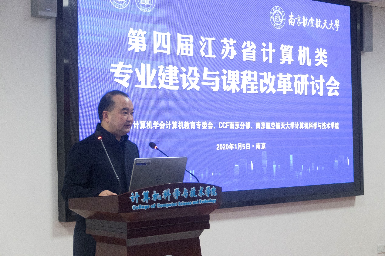 校党委副书记陶勇首先致辞,对参会专家和学者表达了热烈的欢迎,并介绍了我校的基本情况。陶勇书记指出人才培养是大学的本质职能,本科教育是大学的根和本;随着国家对本科教学的日益重视,教育部推出了一流专业的双万计划和一流课程的双万计划。在此背景下,召开算机类专业建设和课程研讨会特别应景应时,希望各位代表在会议期间积极探讨新形势下教育教学改革的有效途径,交流分享成功经验,加强合作与交流,积极计算机类专业建设和课程的教学改革,取得更多的教学改革成果。