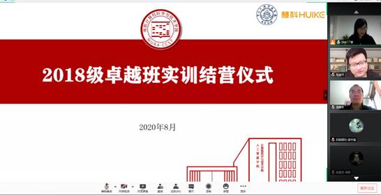 8月5日,2018级卓越班同学迎来了暑期实训项目的验收评审,由于今年的特殊原因,整个暑期实训全部采用了“云端”模式,验收评审也在线上进行。这是对同学们暑期实训的检验,也是学生风采的一次展示。南京林业大学信息学院院长业宁、南京工业大学计算机学院副院长刘学军、南航计算机学院/人工智能学院副院长赵蕴龙、院长助理李鑫、慧科教育科技集团有限公司周晓杰、徐达、张峻等位5企业导师代表出席了本次活动,活动由慧科公司大数据分析师EMO丁蕾老师主持。