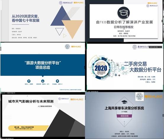 此次实训成果验收评审主要分为学生团队项目展示和答辩、评委提问和点评两个环节。项目团队分别就项目背景、成果展示、算法亮点等几个部分进行公开答辩。各个项目结合当下热点时事,解决日常民生问题,从日常的城市天气影响分析与未来预测到旅游大数据分析平台项目,通过大数据分析,让生活变得更生动、更清晰。从二手房交易大数据分析到共享汽车决策分析,让生活变得更方便、更快捷。这些项目来源于生活,也走向我们的生活。