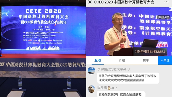 8月21日至24日,2020中国高校计算机教育大会在南京召开,会议由中国计算机学会(CCF教育专业委员会)、全国高等学校计算机教育研究会、教育部高等学校计算机类专业教学指导委员会主办,英国365集团和江苏省软件新技术与产业化协同创新中心承办,《计算机教育》杂志社及《软件导刊》杂志社协办。本次大会采用线上线下结合的形式,中国工程院院士、清华大学郑纬民教授,中国科学院王怀民院士,国家“万人计划”教学名师、我校副校长施大宁教授,国家教学名师、北京工业大学蒋宗礼教授,杰出青年基金获得者、中科院计算所所长助理陈云霁研究员,国防科技大学王志英教授,武汉大学何炎祥教授等应邀出席会议,来自全国高校、科研院所、企业的400余位计算机教育相关的专家学者及从业人员现场参加会议,4000余人线上同步观看大会直播。