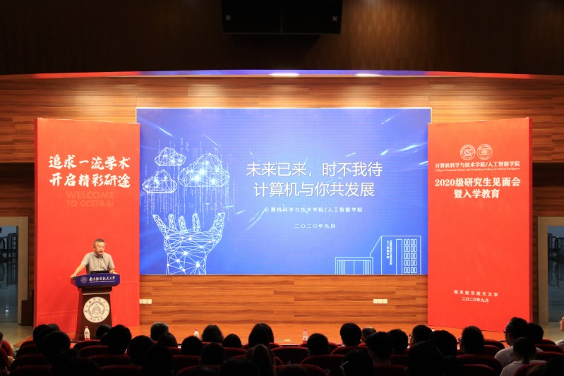 随后,学院“五所一中心”的负责人代表和导师代表,组成强大的阵容欢迎和寄语新生。陈松灿、秦小麟、马宗民、庄毅对新生的到来表示热烈欢迎,希望每位学生能够将个人发展同学院发展联系起来,共同为创造学院的美好明天而努力。皮德常、刘学军、周宇、易畅言、许建秋、魏明强、张彤分享了对于科学研究、课程学习等方面的理解,同时给新生提出了很多有益的建议。在导师寄语环节,2020级的新同学们为导师们献上鲜花,表达了对导师们的节日祝福!