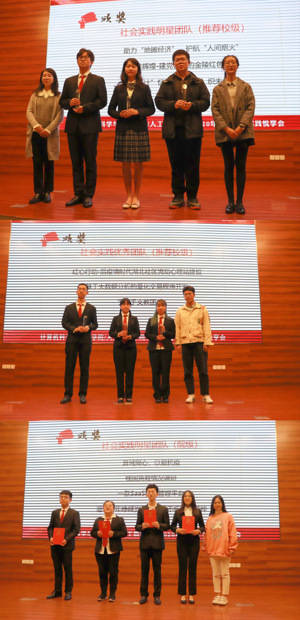 最后,与会老师为学院2020年暑期社会实践推荐校级明星团队、推荐校级优秀团队和院级明星团队颁奖。