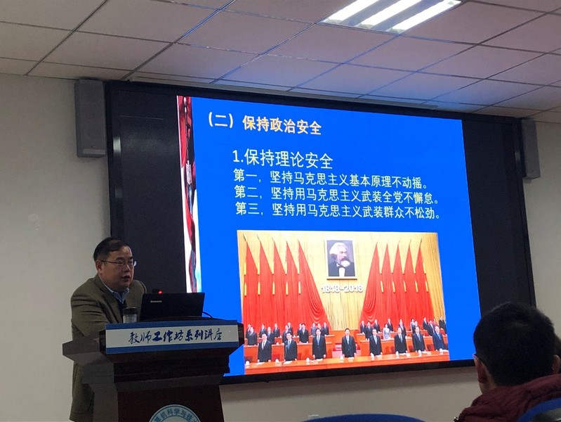 姜迎春教授用一个个生动鲜活的案例讲解了高校意识形态工作存在短板,错误社会思潮长期在高校泛滥,境内外敌对势力长期推动中国“颜色革命”,恶化高校育人环境。其次,就加强高校意识形态建设,提出若干对策性思考,包括:切实贯彻习近平总书记关于哲学社会科学工作的重要思想,旗帜鲜明讲政治,保持斗争精神,提高意识形态素养和能力等。