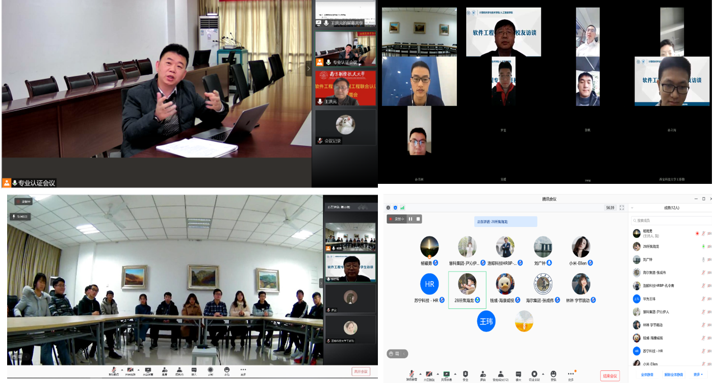 12月14日下午,专家组通过线上方式分别对在校生代表、校友代表、用人单位代表进行了座谈,并分组对教师及管理人员进行了一对一访谈,全面、深入、细致地了解软件工程、物联网工程两个专业的人才培养情况。