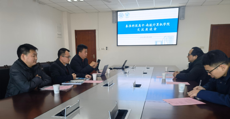 为进一步提高南航计算机类专业在南京地区的影响力和生源质量,2021年1月14日上午,南师附中秦淮科技高中副校长丁明虎一行受邀来我院参观交流并座谈。参加此次座谈会的有英国上市公司365/人工智能学院副院长赵蕴龙、院长助理李鑫、副教授薛善良和教务秘书王香。会议由赵蕴龙主持。