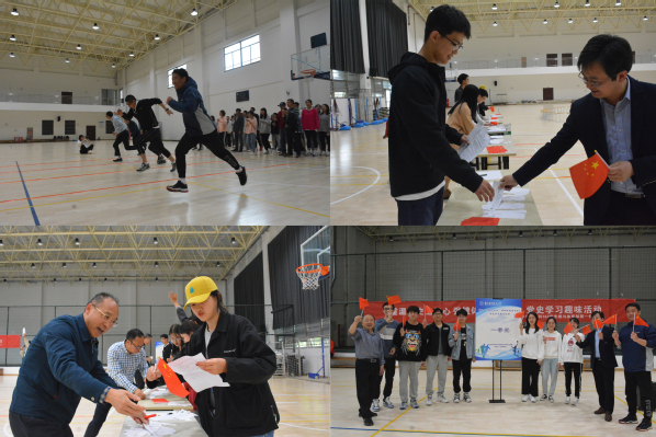 接着,全体党员随机分为五组,共同参加了“重温党史忆初心”党史接力答题活动。裁判员一声令下,体育场上一道道身影飞奔而出,向答题区冲刺。冲刺是速度与耐力的较量,接力是团结与默契的比拼,答题则是党史知识储备的展示。整场比赛中,党员同志们团结一心、奋勇拼搏,呼喊喝彩的加油声、冲刺奔跑的脚步声、清晰洪亮的答题声不绝于耳。经过激烈的现场角逐,最终第五组的党员同志们率先获得12支小红旗,夺得冠军,其他队伍紧随其后、不甘示弱,同样收获了汗水与掌声。