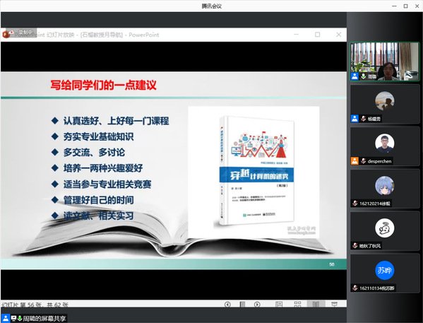 最后,她为同学们提出了夯实专业基础知识、培养一两种兴趣爱好、做好时间管理等建议,鼓舞新生步入大学后走好第一步、开启新征程,激励高年级同学深耕专业、勤于探索。本次月导航深入浅出,同学们纷纷表示受益匪浅。