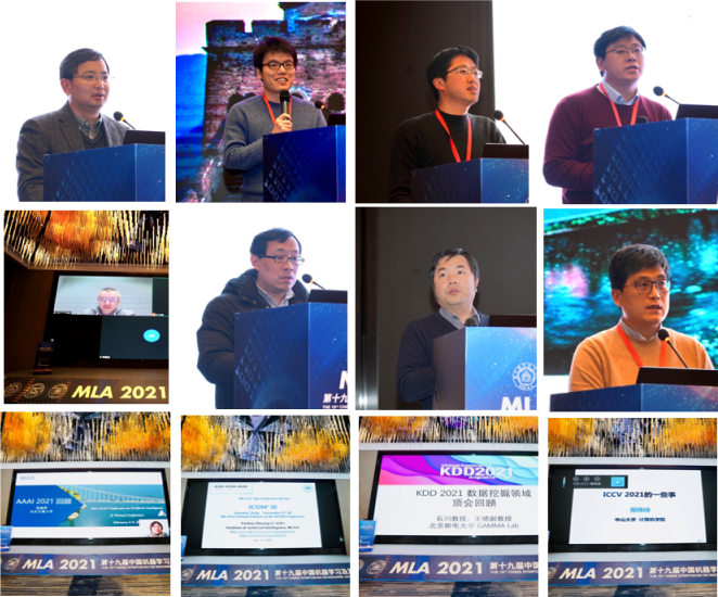 在最后的 Top Conference Review 环节,会议邀请了15位知名学者对过去一年机器学习及其相关领域的国际顶级会议情况和研究发展趋势进行了介绍。作为MLA会议的一个特色环节,TCR报告邀请在顶级会议上担任重要职务或深度参与的重要学者进行介绍,有利于听众了解会议特色和最新发展趋势,多年来一直备受欢迎。