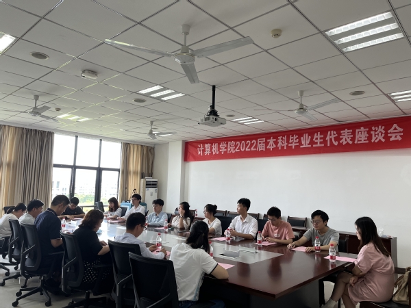 6月21日上午,计算机学院2022届本科毕业生座谈会在学院楼509会议室召开,院党委书记刘健荣、副书记王宁,副院长李鑫,2018级本科生班主任代表、教务员、辅导员以及毕业生代表们参加座谈会。会议由李鑫主持。
