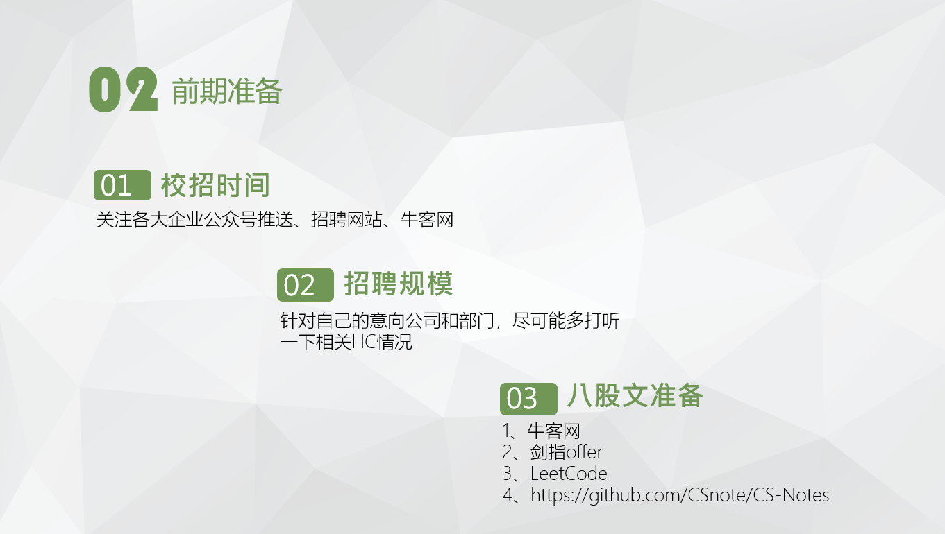 最后,李星罗以互联网大厂求职指南为主题,从求职准备、职前认知、工作感想三个方面进行分享。他强调充分的笔试、面试准备以及面试问题复盘的重要性和必要性,从学会适应、尊重变化、寻求变化三个方面逐层讲解个人入职前后的成长路径,引导大家做好职业生涯规划。