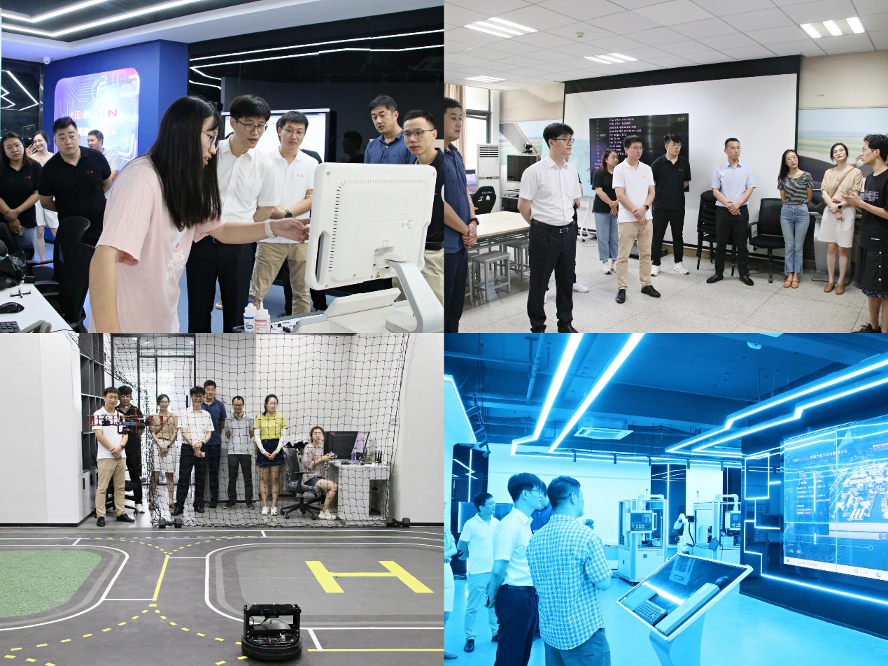 交流会前,张宝一行在计算机学院党委副书记王宁、副院长黄圣君、李鑫的陪同下参观了学院航空计算实验室、模式分析与机器智能实验室、工业数字孪生实验室、多模态无人集群协同实验室,了解相关研究方向的最新科研成果。