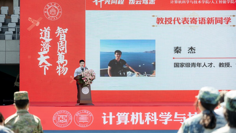 随后,秦杰寄语新生,他结合自身经历通过三个故事,鼓励各位新生做好大学规划,将时间合理安排,大胆尝试创新,努力解决学习道路上的各项难题。