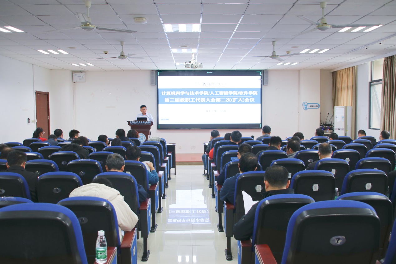 2022年11月26日,计算机学院召开第三届教职工代表大会第二次(扩大)会议。学院领导班子全体成员、第三届教职工代表大会代表50余人参加会议,第一届学术委员会委员列席会议相关议题。会议由学院副院长燕雪峰主持。