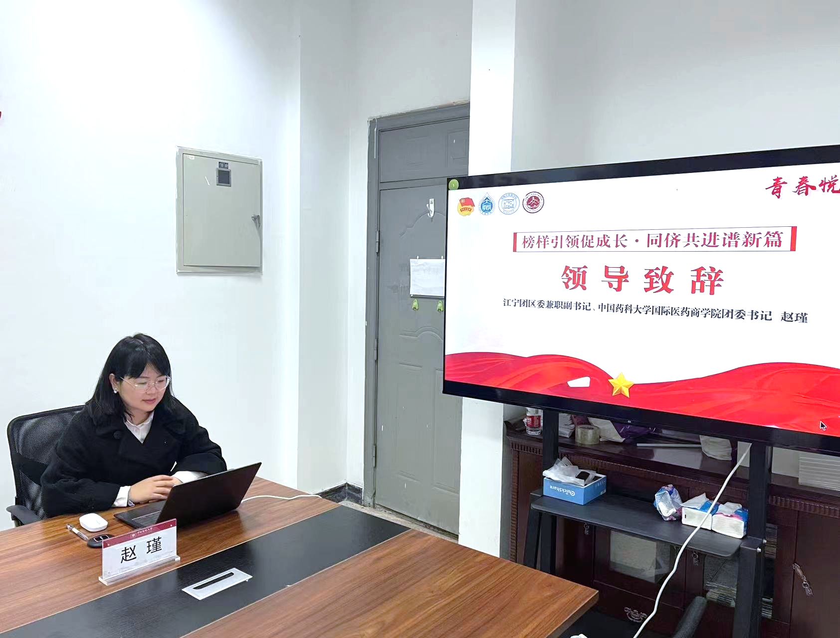 赵瑾代表江宁团区委发表致辞。她深度肯定了本次活动的重要意义,号召同学们做有信仰的人,坚定理想信念,厚植爱国情怀;做善学习的人,扎实学识,提升本领,将小我融入祖国大我、人民大我之中;做有担当的人,勇于奋斗,敢于拼搏,以实际行动担当时代重任。