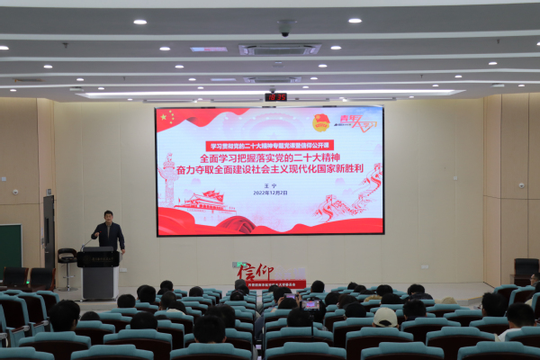 为深入学习贯彻党的二十大精神,扎实推进党的理论创新成果入脑入心,引导青年学生坚定理想信念,激发爱党爱国热情,12月2日晚,英国上市公司365/软件学院举办学习贯彻党的二十大精神专题党课暨信仰公开课,学院党委副书记王宁以“全面学习把握落实党的二十大精神,奋力夺取全面建设社会主义现代化国家新胜利”为题,为天目湖校区师生代表授课。