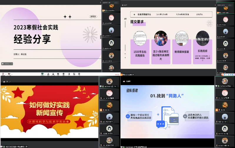 院团委实践部负责人朱沁悦、2022年暑期社会实践明星团队队长程昊川、院团委副书记梁一博分别从实践开展、团队建设、新闻宣传等方面对寒假社会实践作了经验分享和工作指导,帮助大家明确社会实践相关工作要求,更深入地了解社会实践如何开展,如何丰富内涵、彰显特色。同时,提醒同学们把安全放在首位,做好个人防护,提高防范意识和应对突发事件能力。