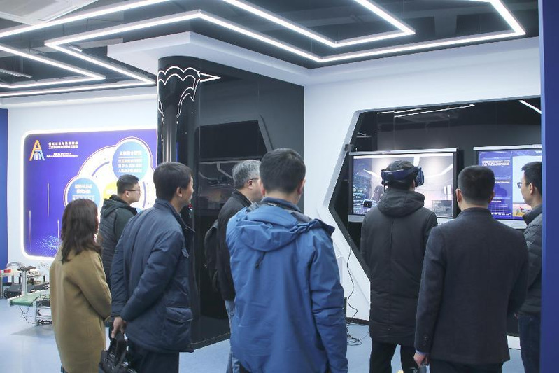 与会人员一起前往“御风园”航空航天教育教学实践基地,王宁为卢德会一行详细介绍了基地的建设背景。随后参观了计算机学院高安全系统的软件开发与验证技术、模式分析与机器智能两个工信部重点实验室、航空计算实验室,观摩了学院在智能发动机决策系统、军事智能等方面的研究成果。