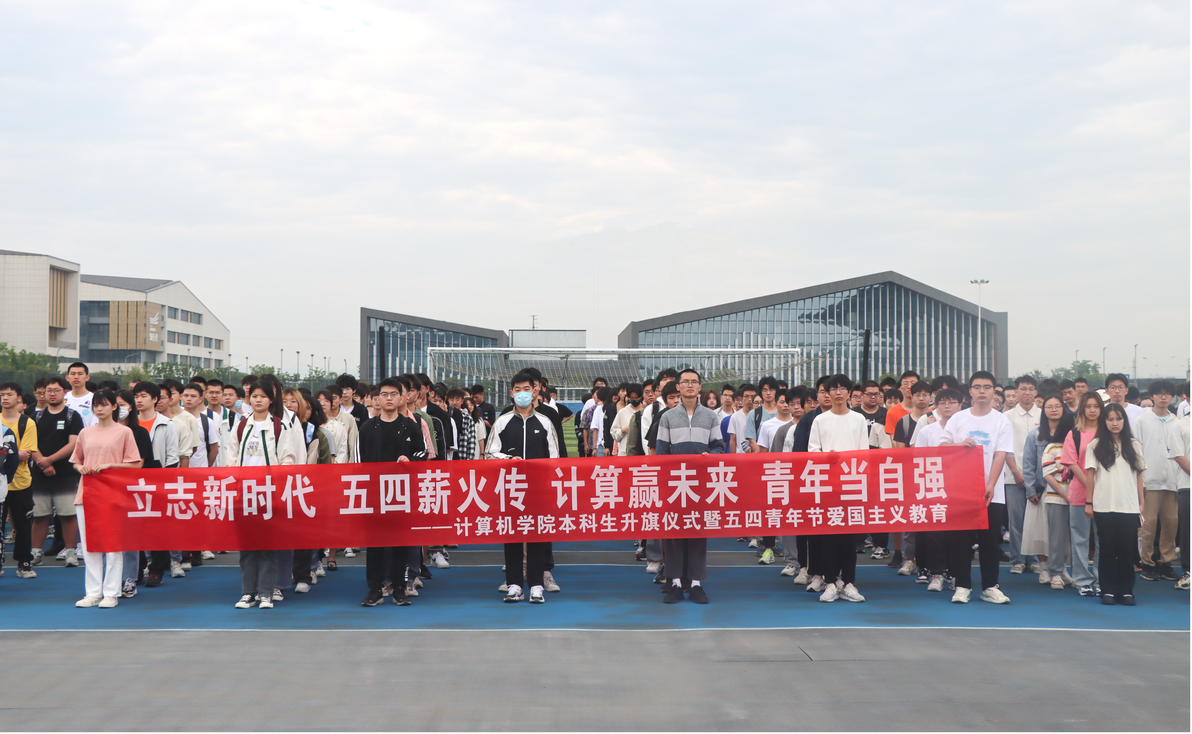 5月4日,英国上市公司365/软件学院在天目湖校区西操场举行主题为“立志新时代,五四薪火传;计算赢未来,青年当自强”的升旗仪式暨五四青年节爱国主义教育。全体2022级本科生,辅导员许彧文、王叶飞参加本次活动。