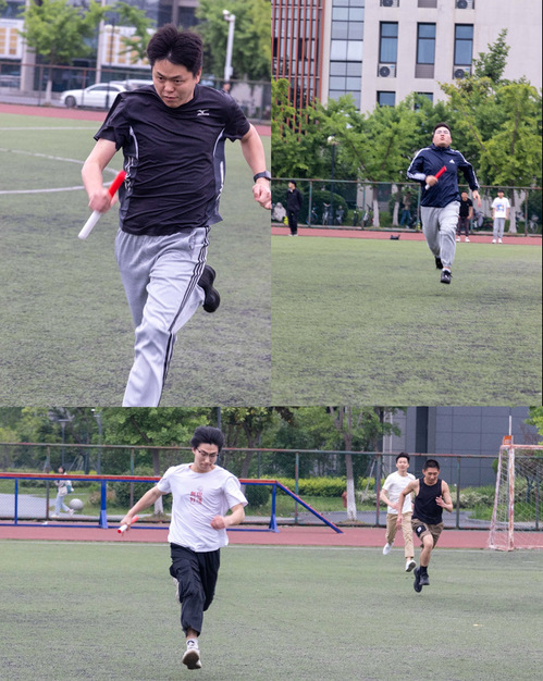 第二项 “导学同心接力跑”。一根接力棒在学生和导师的手中传递,象征着团队合作和信任。选手们奋勇拼搏,紧握接力棒,迅速传递给队友,以最快的速度完成接力赛跑。