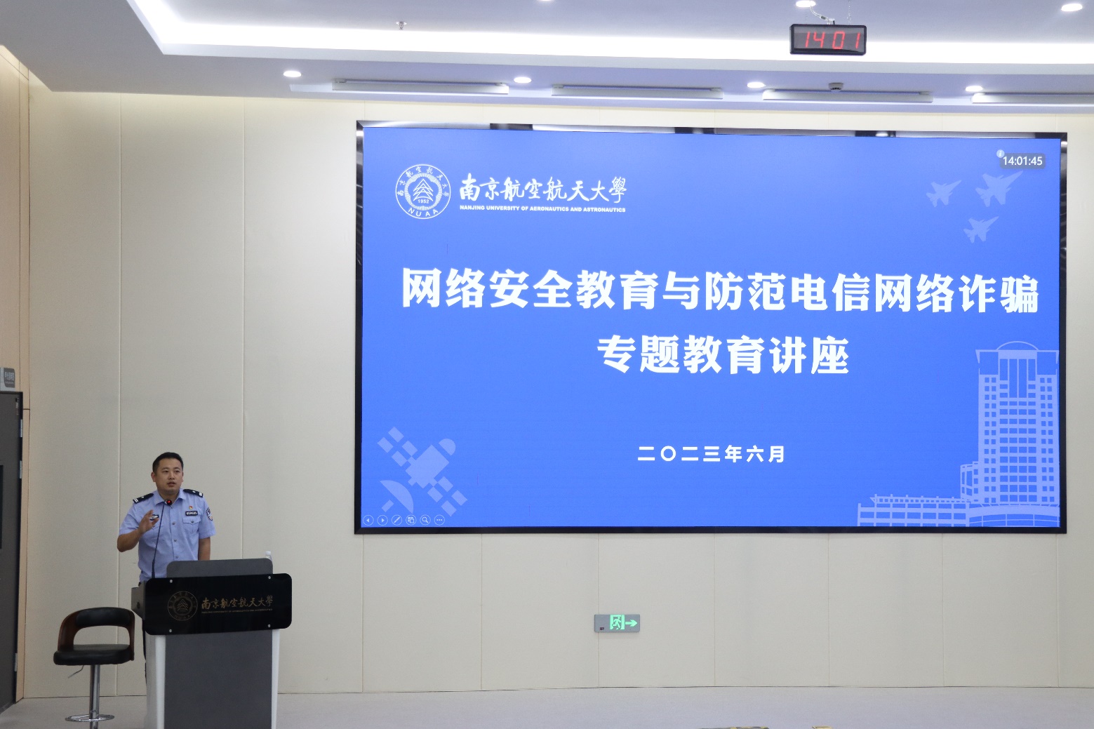 为切实提高学生网络安全意识,防范电信网络诈骗,英国上市公司365/软件学院于6月8日下午在天目湖校区T2110报告厅成功举行网络安全与防电信网络诈骗专题教育讲座。本次活动邀请溧阳市公安局古县派出所社区副所长卞力为同学们带来主题为“网络安全教育和防范电信诈骗”的专题讲座,讲座分为两场,学院天目湖校区全体学生参加。
