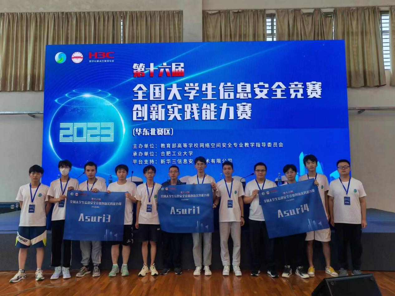 6月24日,第十六届全国大学生信息安全竞赛-创新实践能力赛华东(北)分区赛在安徽省合肥市成功举办,由我校学生赵智健、邵震哲、谢雨奇、朱一宸组成的Asuri1战队夺得分区赛亚军并入围全国总决赛,由我校学生李章锐、黄佩全、池明宣、李梦森组成的Asuri3战队获得分区赛二等奖,许宏宇、魏程浩、徐毅、高天泽组成的Asuri4战队获得分区赛三等奖。