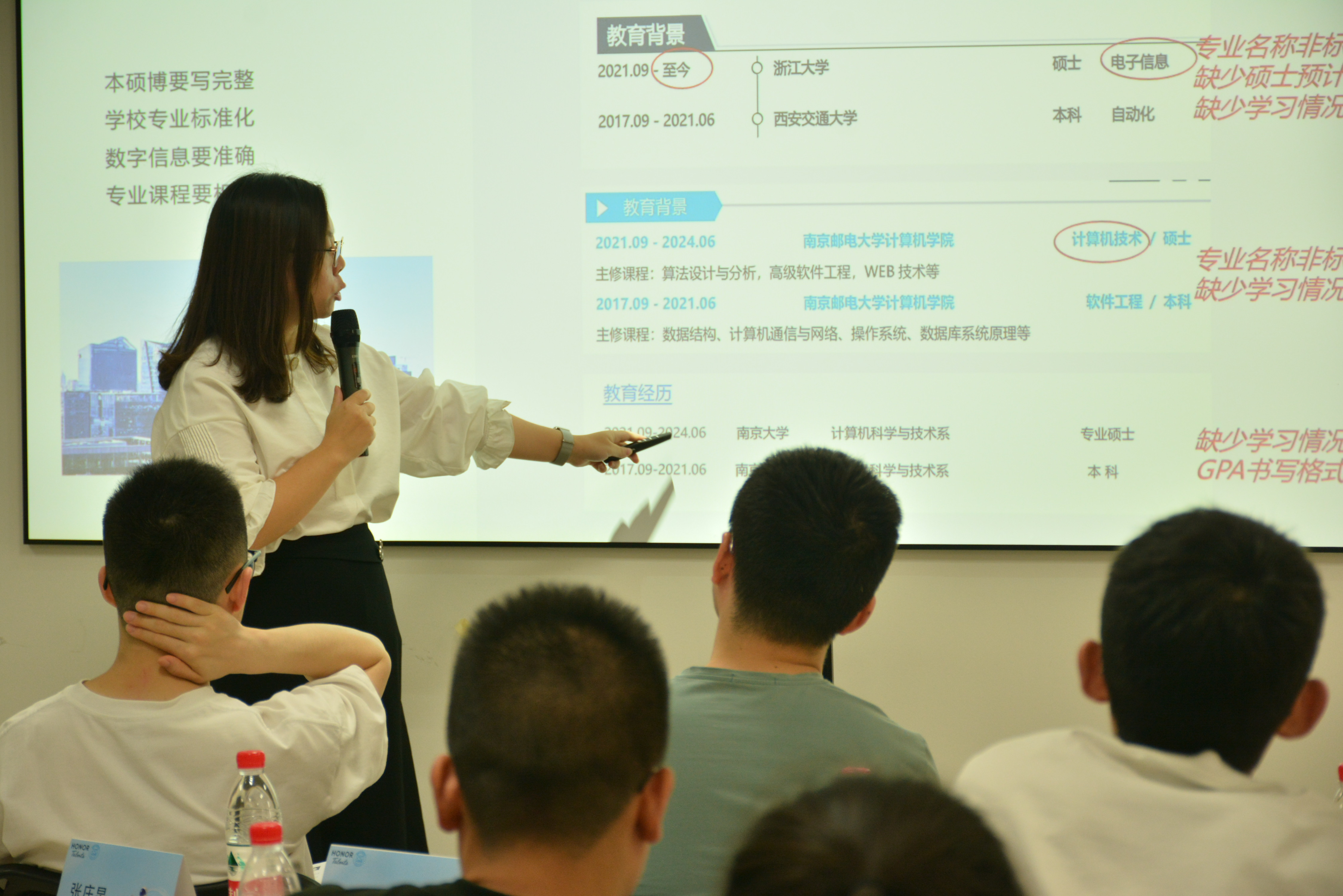 罗毅首先以简历的使命为切入点,为同学们讲解简历写作的底层逻辑。她指出,简历的定位是打造属于自己的职业名片,借此获取面试机会。