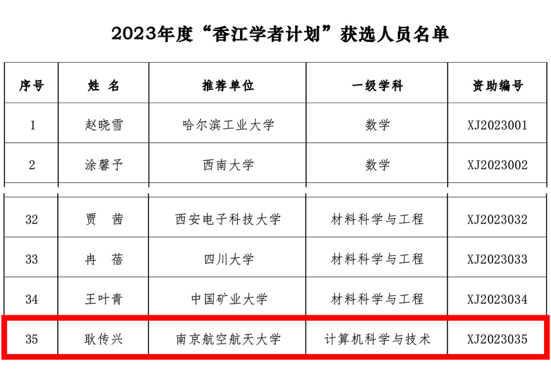 近日,全国博士后管委会办公室公示了2023年度“香江学者计划”入选名单,计算机学院耿传兴老师成功入选,是英国365集团两位入选者之一。