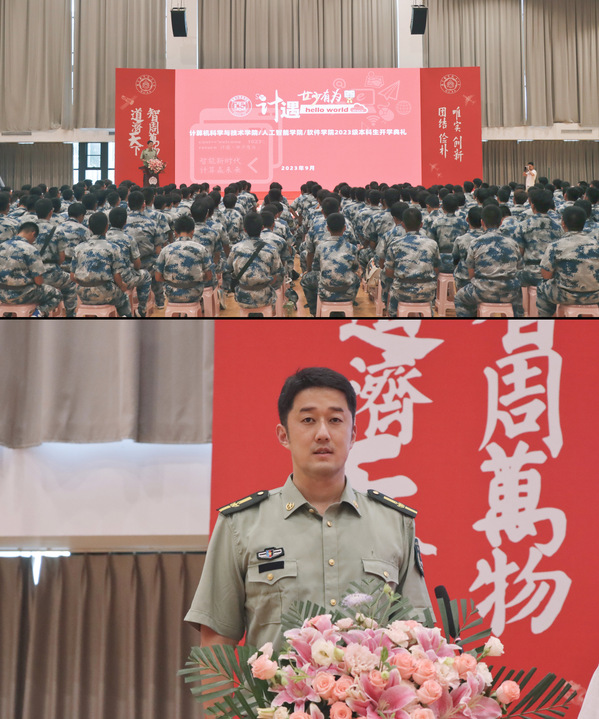 2023级迎新主题片《计遇·廿少有为》拉开了此次开学典礼的序幕。会上,黄圣君介绍了学院的基本情况并致欢迎辞,对加入南航计算机学院的新同学们表示热烈的欢迎和祝贺,黄圣君从习近平总书记对青年的寄语谈起,为新同学们未来大学生学习生活提出了三点期望,勉励新同学要坚定理想信念、练就过硬本领、勇于创新创造,为建设社会主义现代化强国而读书,为伟大祖国的繁荣昌盛,为实现中华民族伟大复兴而奋斗!