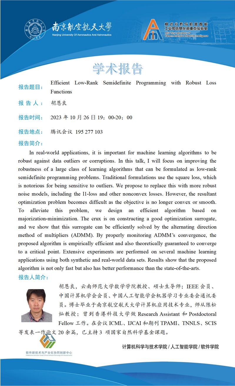 【石榴大讲堂】Efficient Low-Rank Semidefinite Programming with Robust Loss Functions
