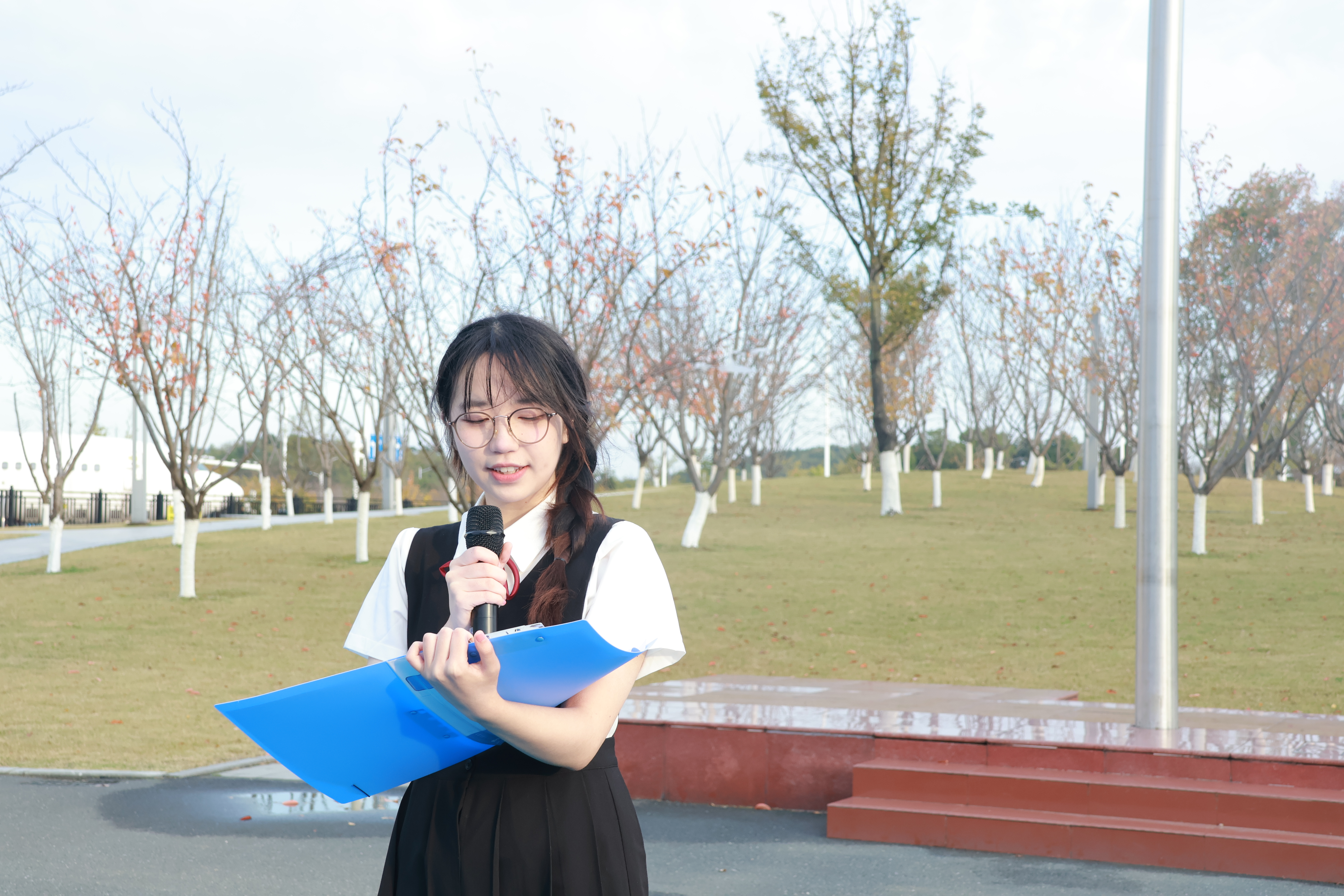 学生代表庄妮可在国旗下发表了主题为“追梦苍穹,点亮梦想”的演讲,她介绍了南航人七十一年来接续奋斗的拼搏历史,并结合自身的“蓝色梦想”鼓励大家接过时代接力棒,练就过硬本领,勇担时代重任,让青春在全面建设社会主义现代化国家的火热实践中绽放绚丽之花。