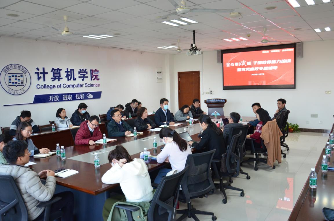 为持续巩固拓展主题教育成果,扎实推进“清廉学院”建设走深走实,切实教育广大干部教师廉洁从政、廉洁从教,12月7日,计算机学院开展“石榴赋能”干部教师能力培训暨党风廉政专题辅导。校纪委副书记张海艮出席会议并作专题廉政报告。学院领导班子成员、党委委员、院长助理、科级干部,各系正副主任、教工党支部书记、纪检委员等近40名干部教师参加本次培训。会议由学院党委书记刘健荣主持。