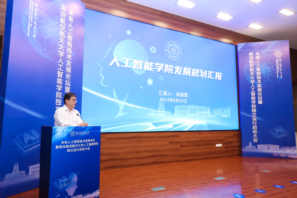 刘伯超向南航人工智能学院独立运行表示热烈祝贺。他表示,党中央、国务院高度重视人工智能发展。人工智能学院正式独立运行,是南航贯彻落实国家战略、服务国家发展大局的重要举措,希望南航以人工智能学院独立运行为契机,在人工智能领域全方位布局,为“人工智能+”添翼赋能。一是心怀“国之大者”,把服务国家战略作为核心使命。找准定位、扛起责任、乘势而上,聚焦基础理论、原创算法、高端芯片和产业生态等重点方向,高起点、高标准、高水平推进人工智能相关领域高质量发展,为加快培育前沿科学方向、培养拔尖创新人才、开展关键技术攻关提供有力支撑。二是发挥特色优势,把培育发展新质生产力作为首要任务。不断促进人工智能与航空航天民航领域相关学科的交叉融合,推动人工智能技术在国家重大需求中的应用,构建具备鲜明特色和显著优势的学科体系,以人工智能高质量发展和高水平应用培育发展新质生产力,推动新型工业化建设。三是强化协同创新,把实现高水平科技自立自强作为战略目标。加快推进人工智能领域的科学技术创新,不断推动产学研用深度融合,通过推进“人工智能+科技创新”“人工智能+产业发展”“人工智能+引智育才”,力求实现“0到1”的创新质变、“1到10”的创新裂变,加快实现人工智能关键核心技术自立自强。