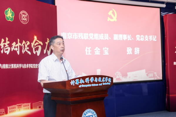 南京市残联党组成员、副理事长、党总支书记任金宝,南京市残联一级调研员、党总支副书记曹志祥,南京市政府残工委办公室主任邓江淮,南京市残联组联处处长石珺,南京市残联宣文处处长吴正中,南京市残联党总支专职副书记胡新星,计算机学院党委书记刘健荣,校团委副书记王洋出席签约仪式。仪式由计算机学院党委副书记王宁主持。