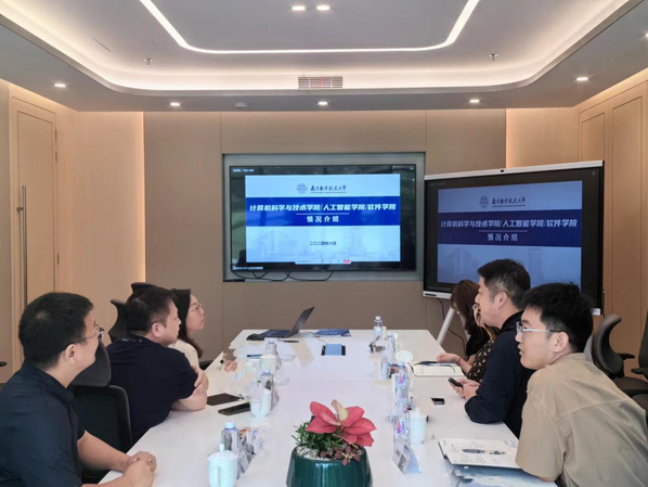 计算机学院院友、荣耀云服务南京地域负责人卫峰,荣耀终端有限公司东部招聘总监罗毅,荣耀终端有限公司东部招聘经理王坤等热情接待计算机学院一行。